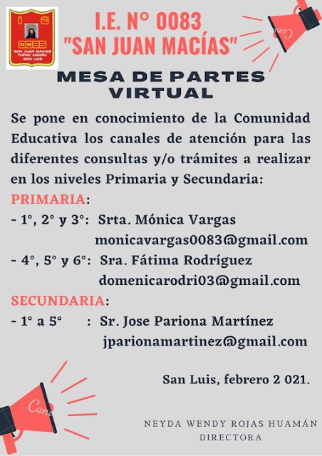 MESA DE PARTES VIRTUAL NIVELES PRIMARIA Y SECUNDARIA